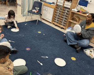 • It was another great week with the honeybees. We had our second week of clubs. At post office club, we sent stickers to our friends. At construction club, we used spaghetti and tape for a tower building competition. At library club, we learned how to use our library cards and had a circle share to share our favorite books. We got bundled up for some fun on the playground and also did some fun active games inside like “bank heist”, bowling and ultimate gaga. We also got creative with some projects like 3D drawings, lanterns and snail art with special guest teacher Julia from the dragonflies. The group did such a good job listening to teachers, being kind to each other and following group expectations that they earned their SECOND party of the year. We look forward to our “Rainbow party” next week!