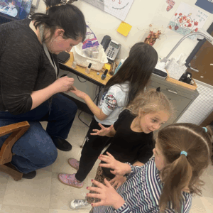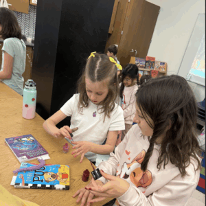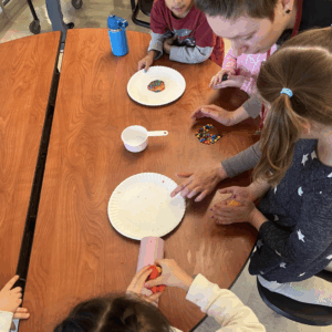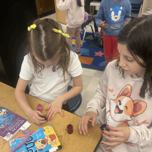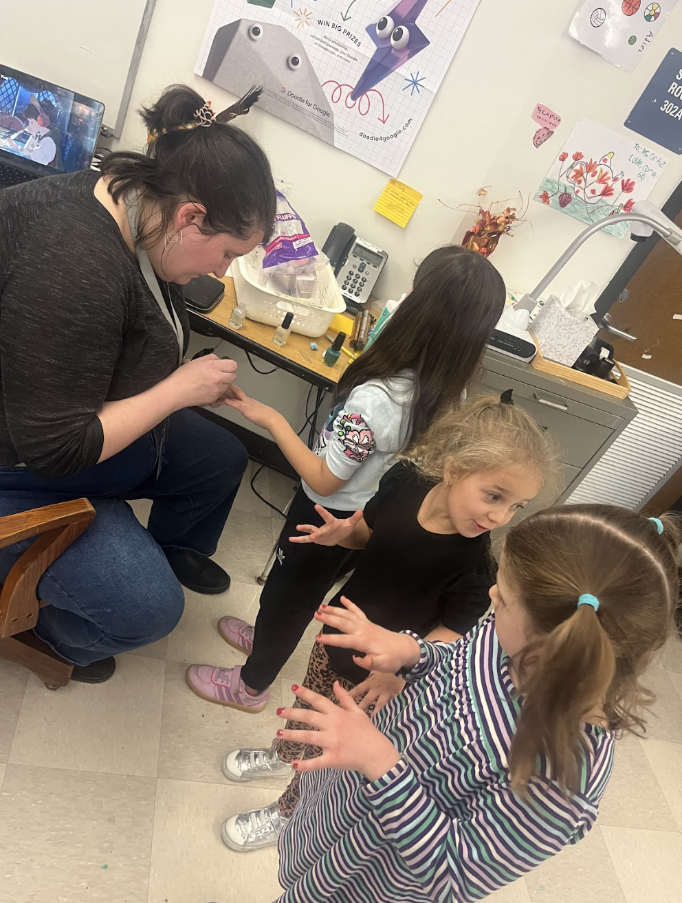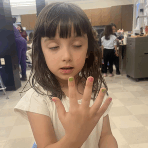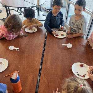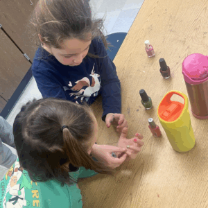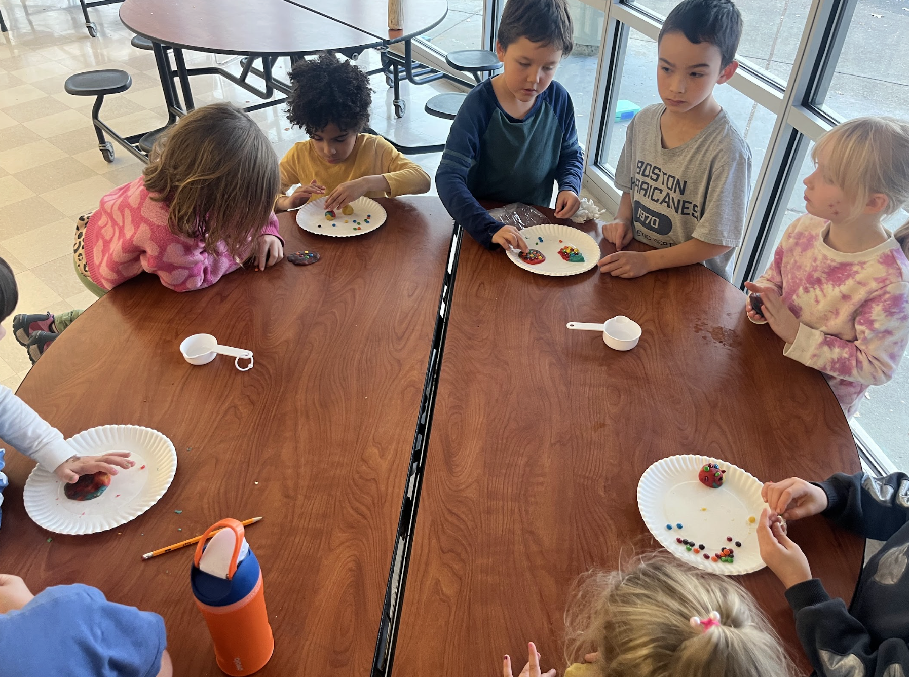 • This week the Honeybees had a lot to celebrate! We had a rainbow party to celebrate earning all of our stars on our star chart, and made cookies together after our exciting early-release reptile show. We had a nail salon with the Dragonflies, learned to make Blah-Blahs with Beth from the Crickets, and played field games with Brian. We love having so many visitors!