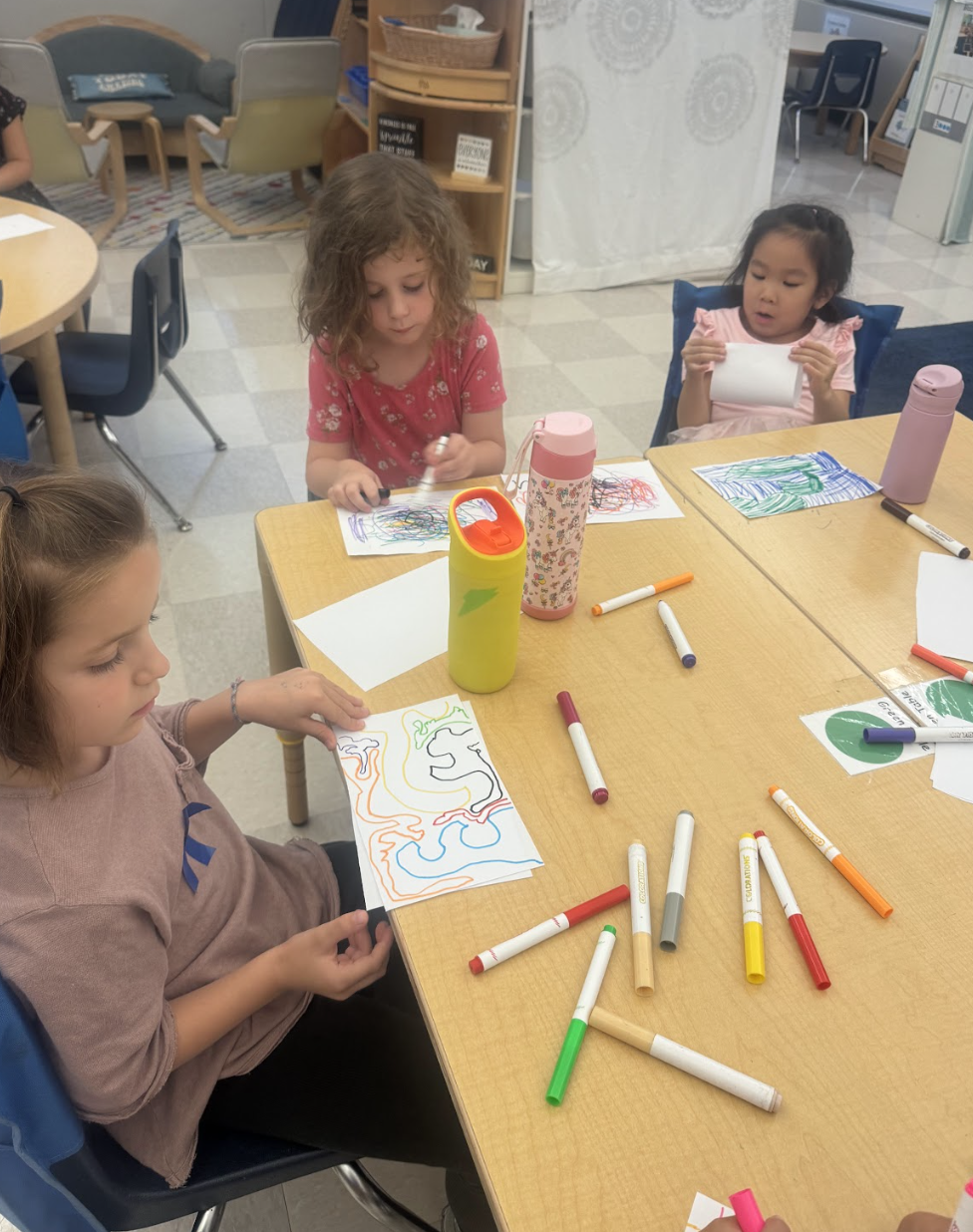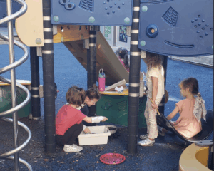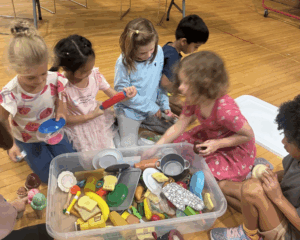 This week the Honeybees utilized new crafting skills like cutting tape, tying pipe cleaners, and drawing abstractly. We experimented with turmeric prints, sound maps, and salt dough, and did a lot of restaurant pretend play. Our group is making new friends and charting new territory this school year!